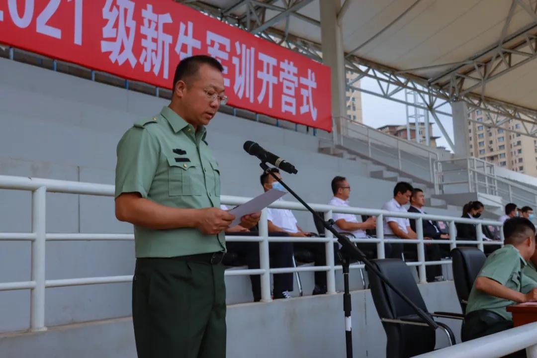 开营仪式上,党委学生工作部(武装部)部长白涛希望2021级全体学兵学习人民军队优良传统、培养艰苦奋斗精神,不断磨练意志、提高修养、增强体质。希望同学们富有朝气、充满斗志的开展军训工作,为实现中国梦强军梦凝聚磅礴力量。