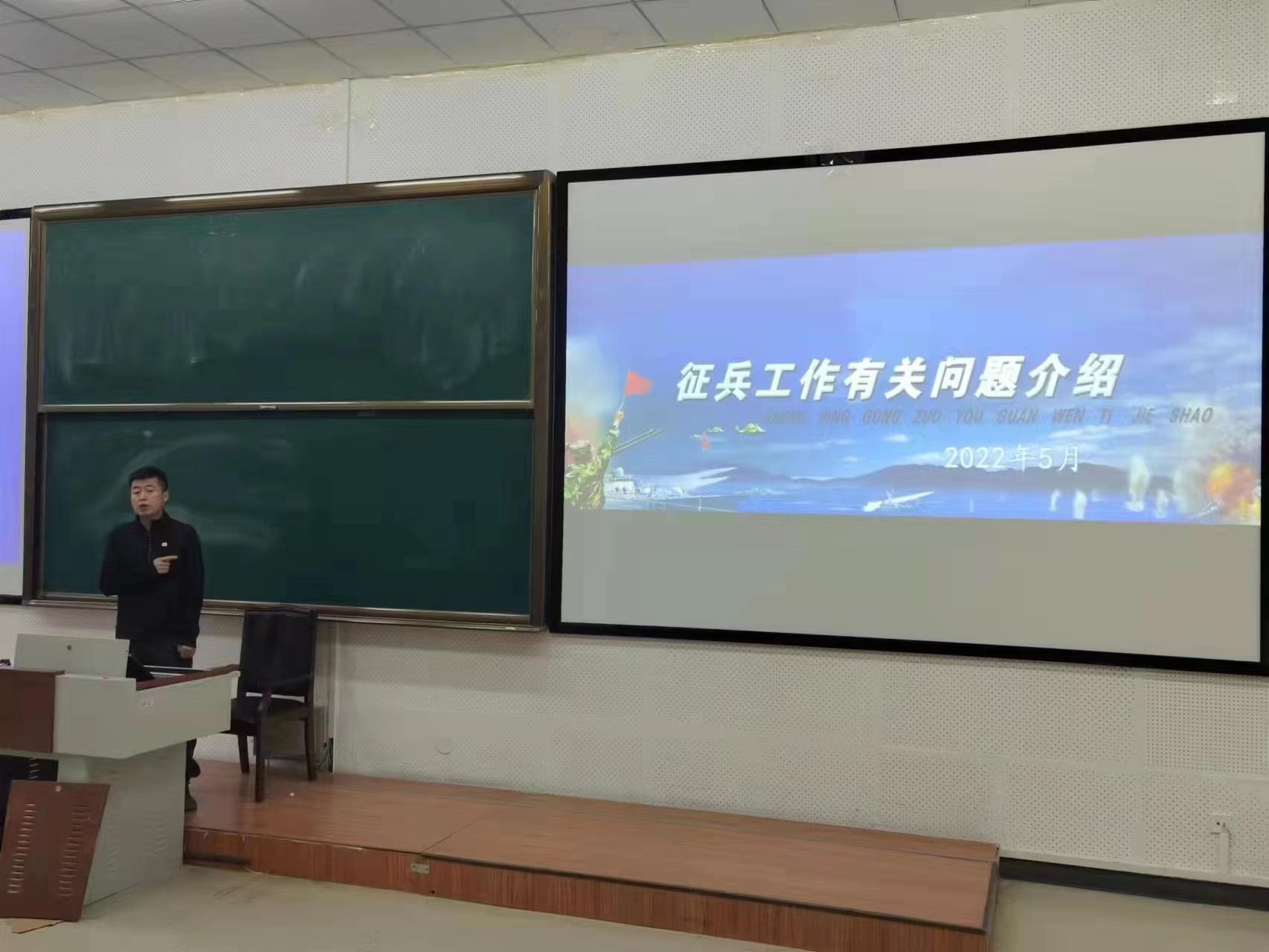 为进一步做好我校2022年征兵工作,提高学工干部征兵工作业务水平,党委学生工作部(武装部)于5月2日组织开展全体学工干部征兵工作业务培训,培训由党委学生工作部(武装部)副部长焦凯主讲。