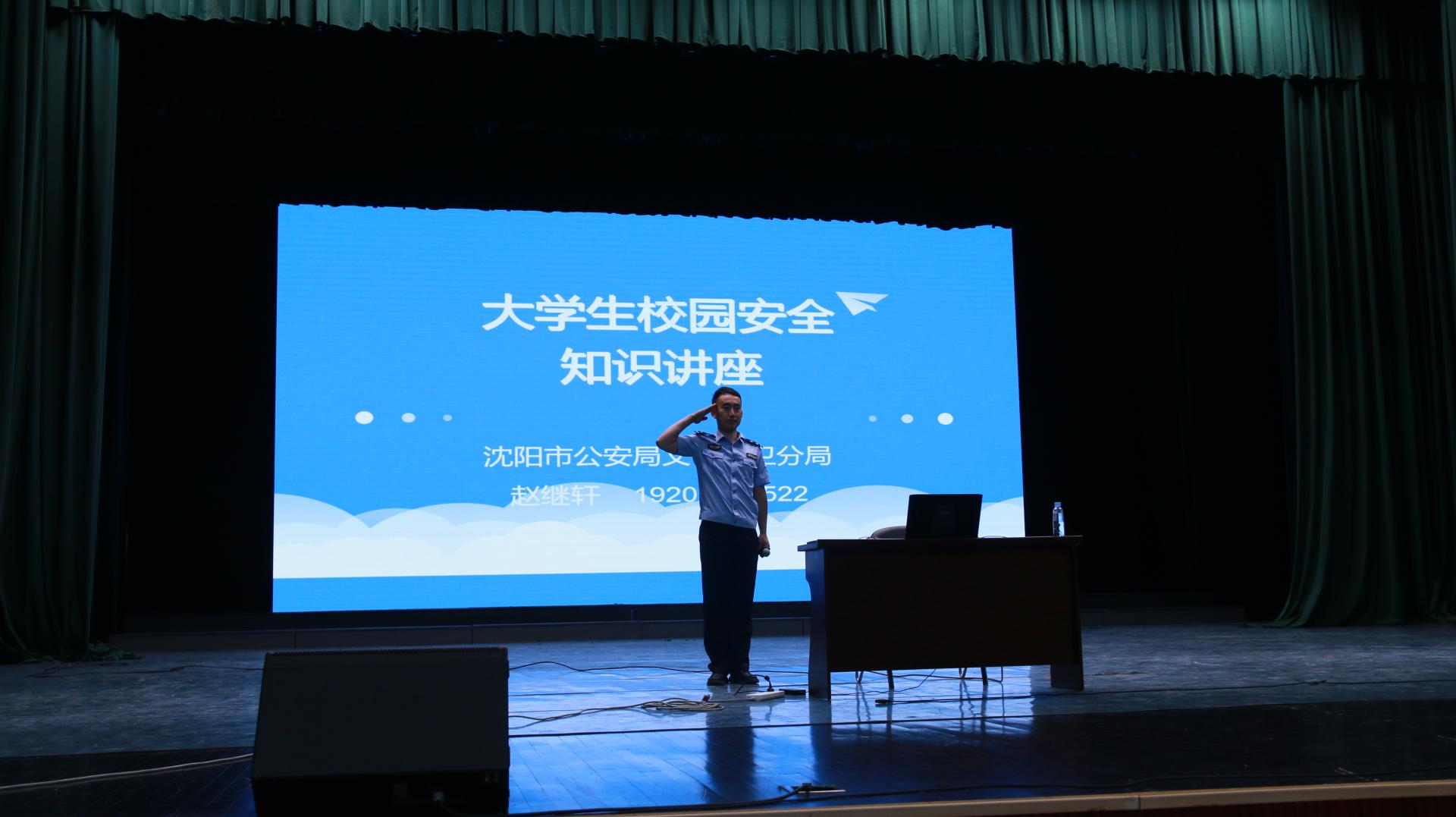 为进一步增强学生识别和预防电信网络诈骗的知识和技能,营造良好的校园氛围,8月27日晚,党委学生工作部(武装部)联合校保卫处邀请沈阳市公安局文化保卫分局国保大队副大队长赵继轩警官在大学生会堂为2024级新生开展安全知识讲座,全体2024级新生参加。