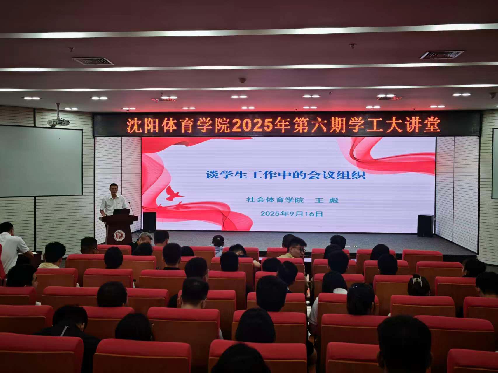 9月17日,党委学生工作部(学生处、武装部)组织开展2025年第六期“学工大讲堂”。本次活动由社会体育学院辅导员王彪以“谈学生工作中的会议组织”为主题进行交流和分享。全体学工干部参加本次活动,活动由党委学生工作部(学生处、武装部)学生管理科科长侯天鹏主持。