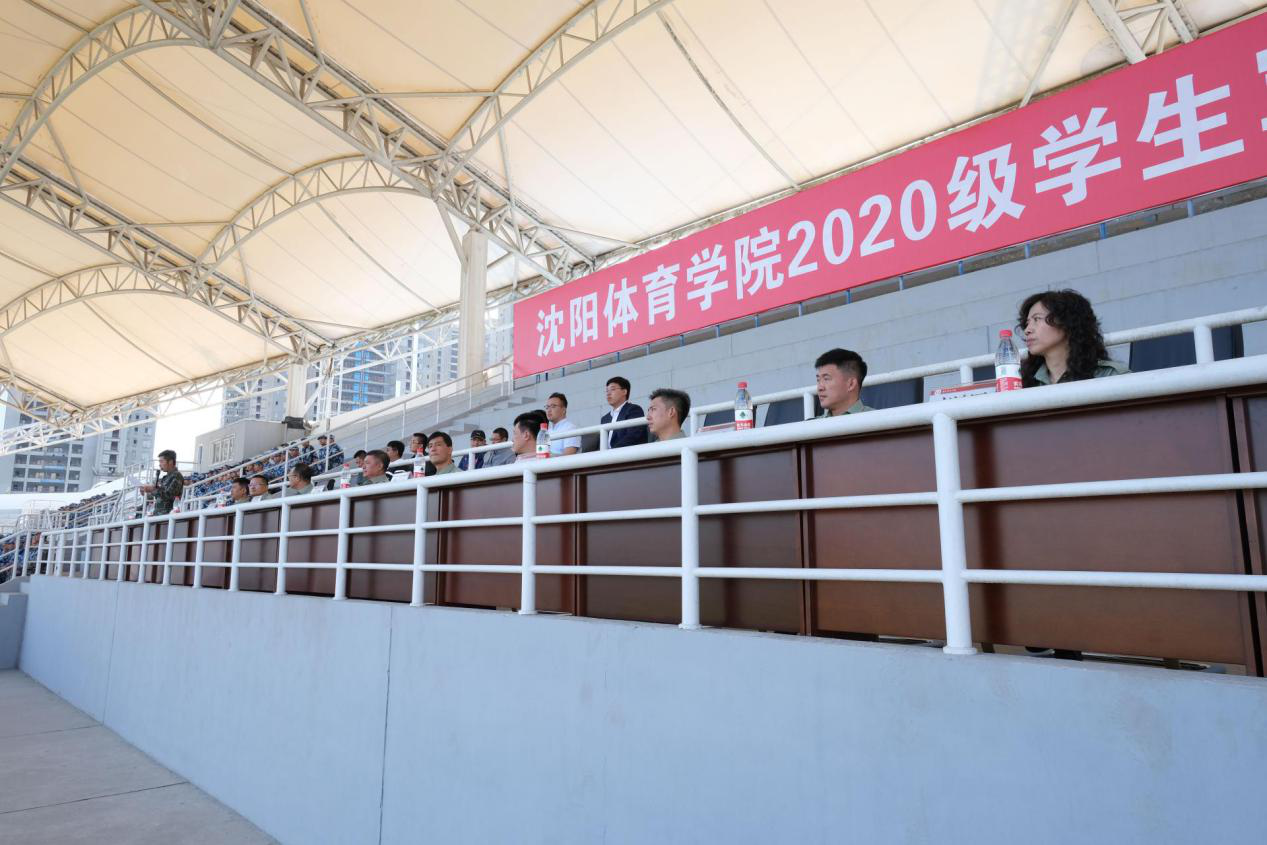 在新生军训队列展示过程中,6支推选班级及教官队伍分别进行军训汇报表演,一队队方阵整齐有序地进入表演场地,展示十天来的训练成果——分列式表演、稍息立正、停止间转法、敬军礼、军姿站立、跨立等军事训练项目。他们步伐整齐、口号嘹亮;军姿飒爽、斗志昂扬;走出了精神、喊出了军威,充分展现了沈体学子良好的精神风貌,赢得了观看台上领导们的阵阵掌声。
